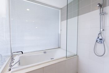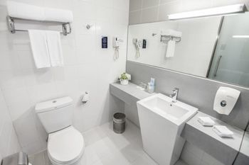 - ห้องอาบน้ำสำหรับรถเข็นในบางห้อง
