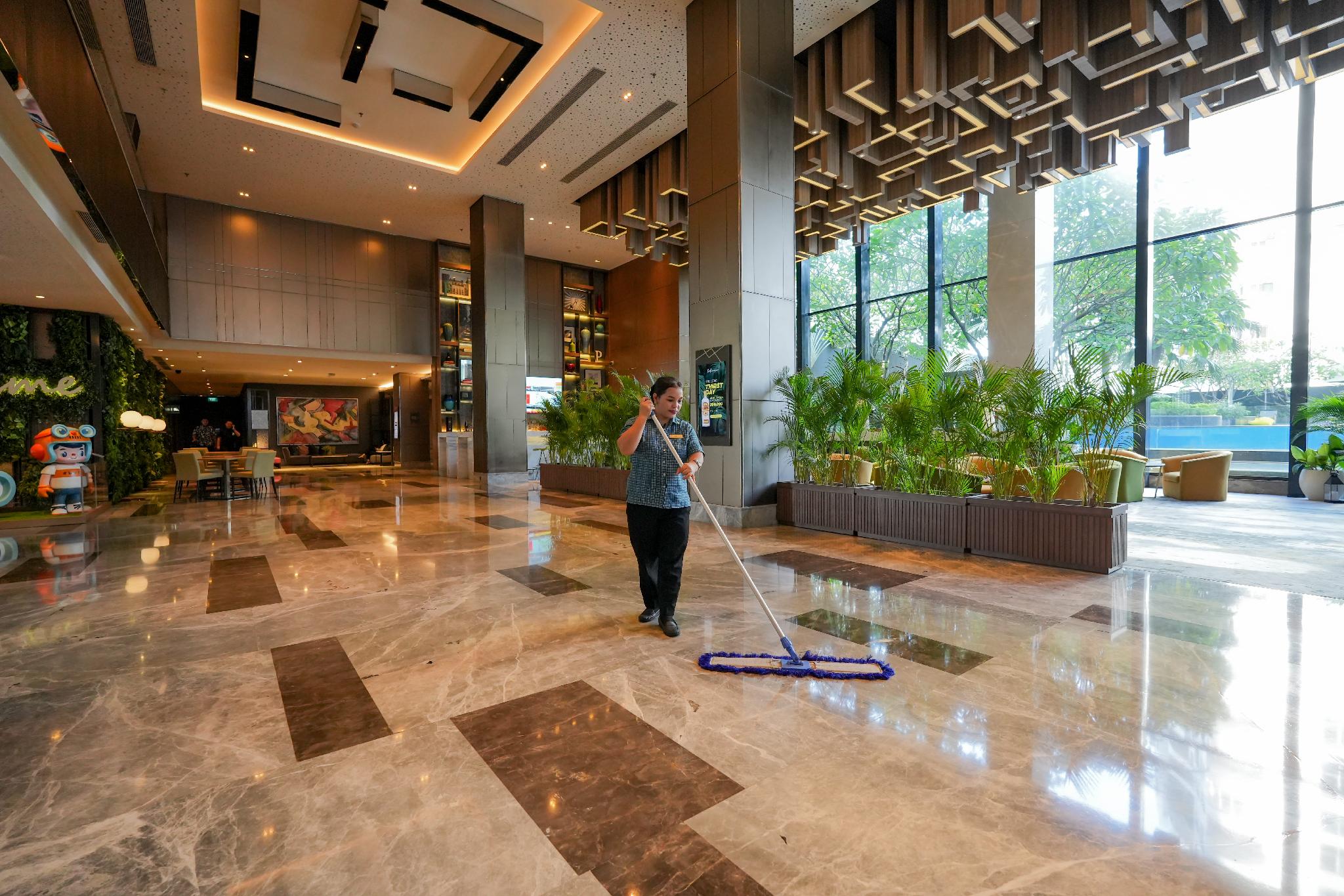 - ฆ่าเชื้อในพื้นที่ส่วนกลางทุกวัน
